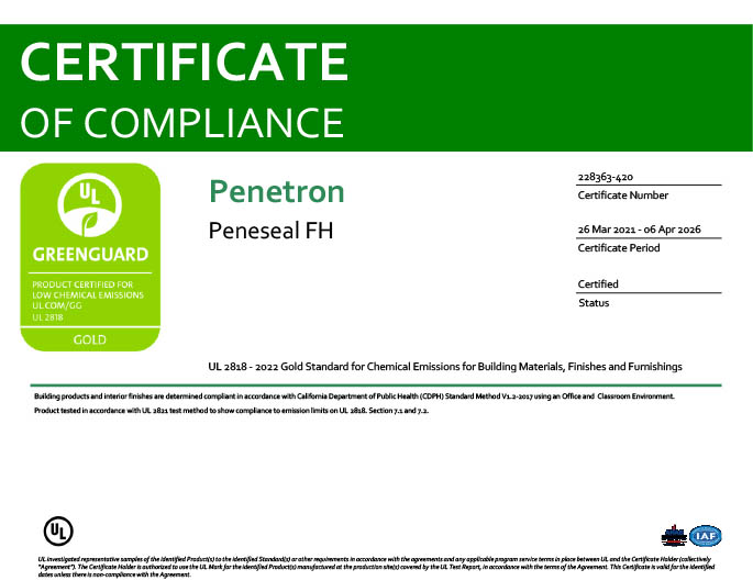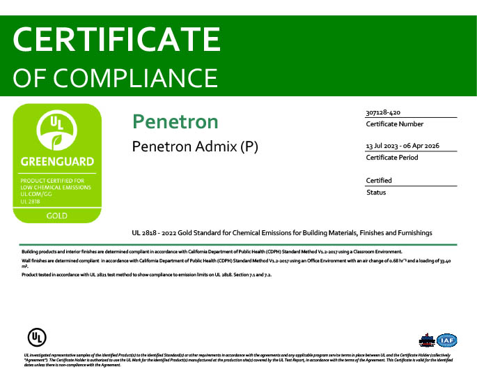 Ο Όμιλος των εταιρειών της PENETRON INTERNATIONAL σε παγκόσμια κλίμακα εναρμονίζεται με τα ισχύοντα συστήματα διασφάλισης ποιότητας, αλλά και με τις υφιστάμενες ανά περιοχή διατάξεις, πιστοποιητικά, συστήματα υγιεινής & ασφάλειας προσωπικού και κάθε απαίτηση προϊόντος, εφαρμογής ή συστήματος. Στο επίπεδο της παραγωγής, οι υψηλές απαιτήσεις ποιοτικού ελέγχου στις υπερσύγχρονες εγκαταστάσεις της PENETRON INTERNATIONAL έχουν κερδίσει την πιστοποίηση ISO 9001:2015 και ISO 14001:2015.